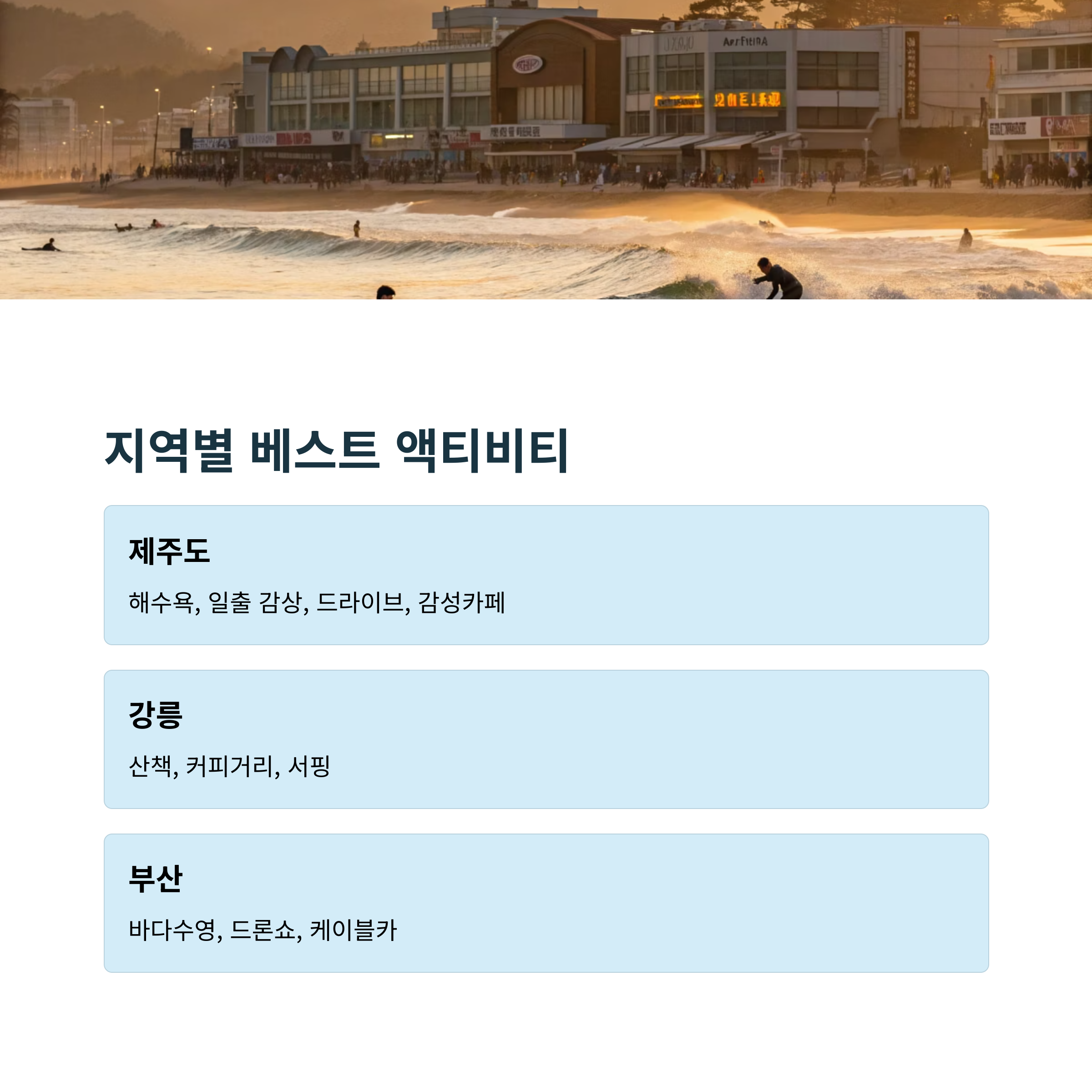 📊 지역별 베스트 명소 & 액티비티
