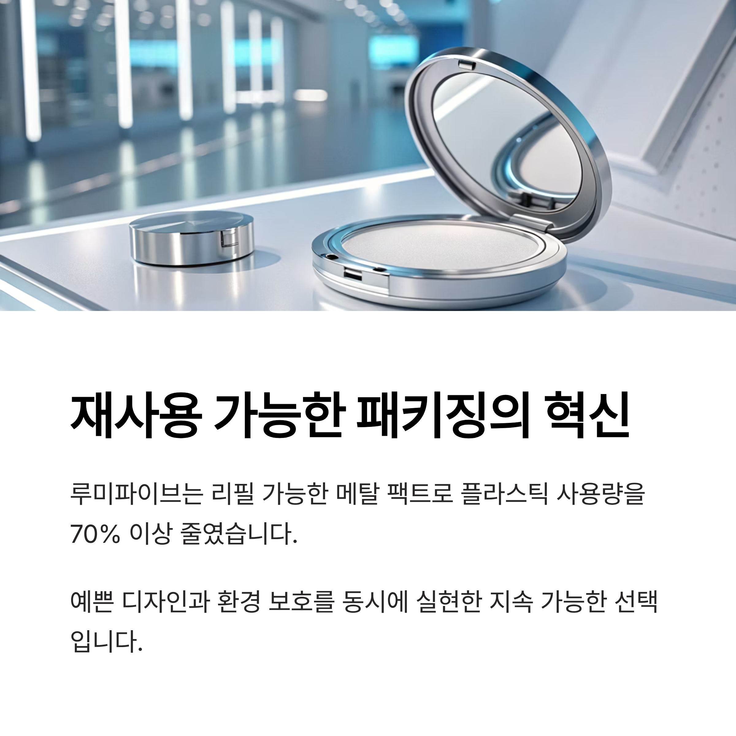 ‘루미파이브’는 리필 가능한 메탈 팩트를 통해 플라스틱 사용량을 70% 이상 줄였습니다.