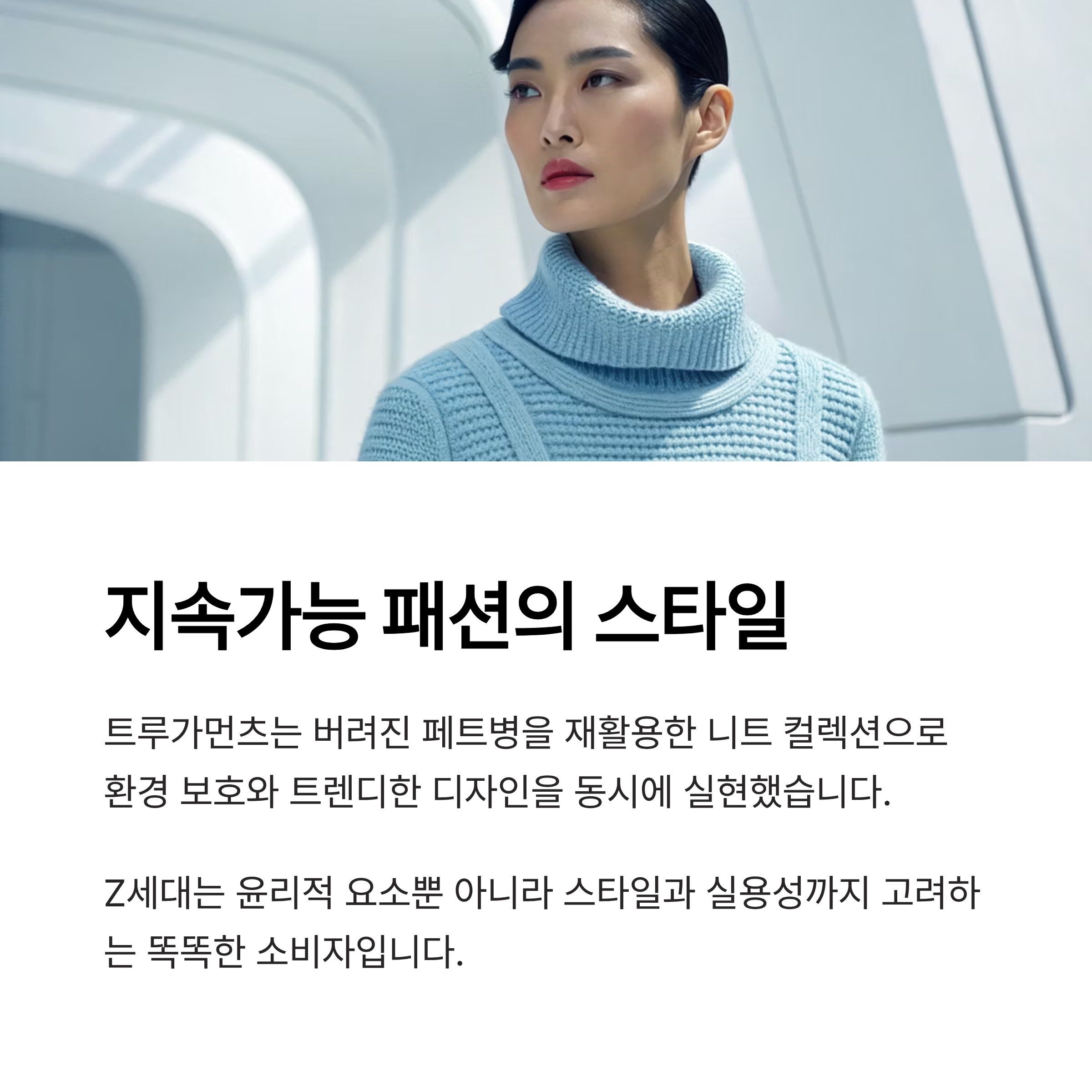 ‘트루가먼츠’는 버려진 페트병을 원사로 재활용한 니트 컬렉션을 출시하며 환경과 디자인을 모두 잡은 사례로 떠오르고 있습니다.